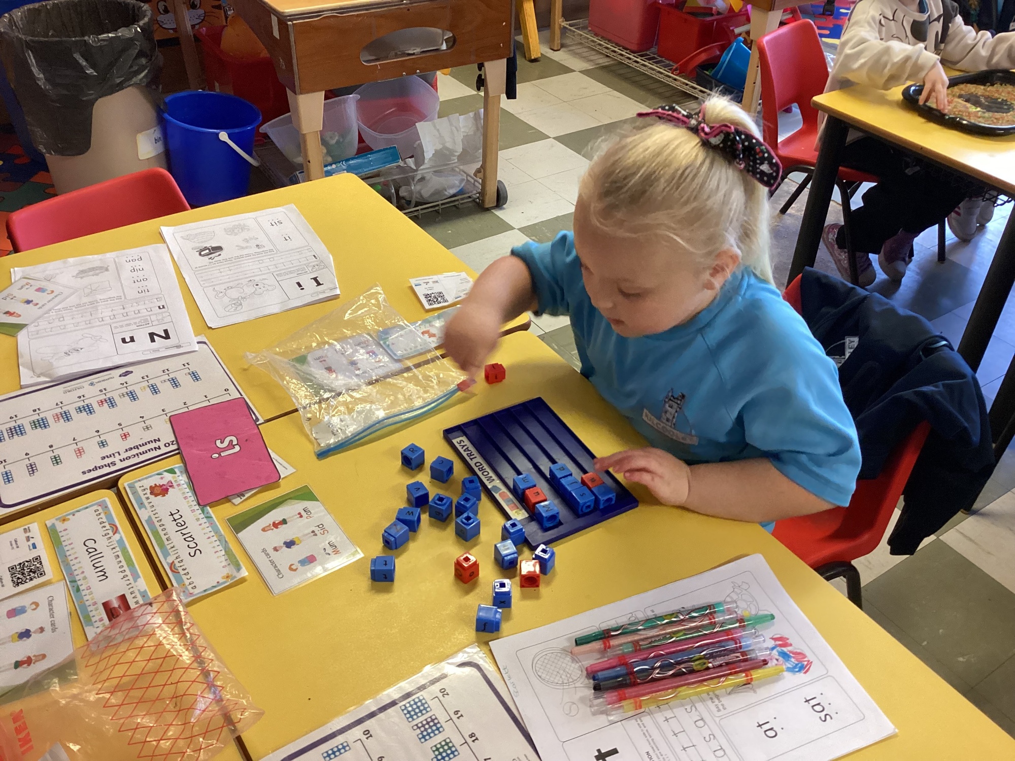 In Primary 1, the children have made excellent progress in developing their letter formation and pencil control, using a wide range of multi‑sensory approaches to support early writing skills. Meanwhile, Primary 2 pupils have been busy extending their high‑frequency words, using phonic cubes, paint and stampers to make learning active, engaging and fun.